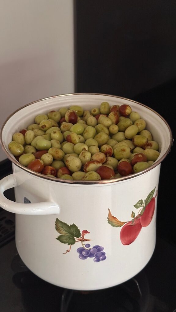 盛岡の友人が自宅で採れた棗を送ってくれたので、ブレンダーでペーストにしたジャムと、ひたひたの水と砂糖で煮て甘露煮に。